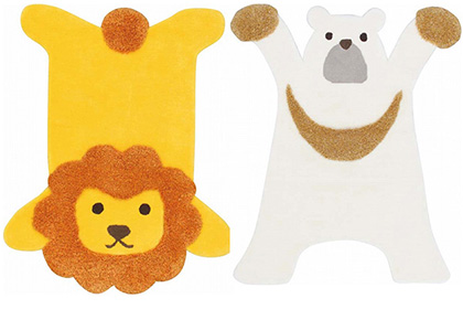 ライオンとシロクマの形をした可愛いふわふわラグ!ホットカーペット対応。なんとも言えないこの表情が可愛い!ゴローンと横になる子どもの姿を想像するだけできゅんとしてしまいます!