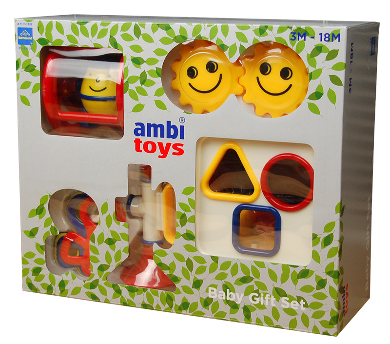 成長に合わせて遊べる下の5種類の玩具をセットにした、アンビトーイ・ベビーギフトセット!生後3ヶ月~1歳半までの成長に合わせて赤ちゃんが楽しめる遊具が機能別に揃ったセットは、性別・タイミング・好みなどを超越してどんな赤ちゃんにも喜ばれます。