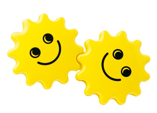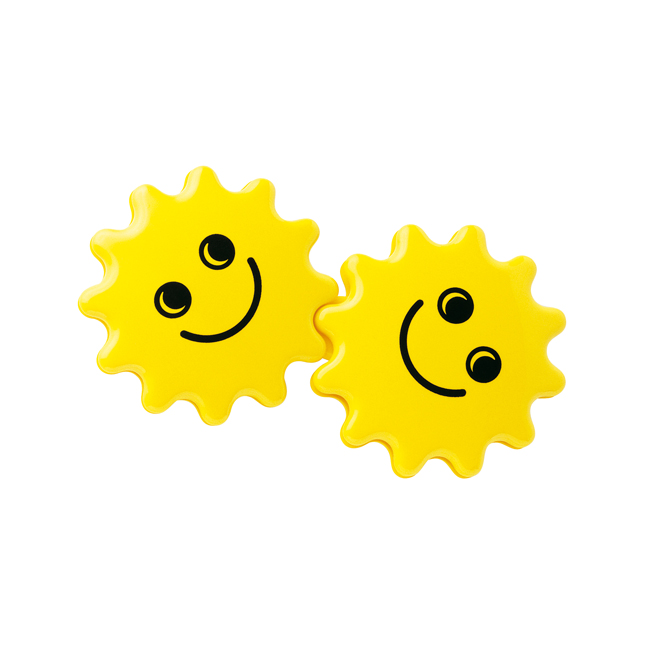 にこにこスマイルの噛み合う2つの星が一緒にクルクル。片手で持つと、双子の星がくるくると回り始めます。自然と両手で持つ動きを促し、おせんべいのような形は歯固めとしても重宝します。