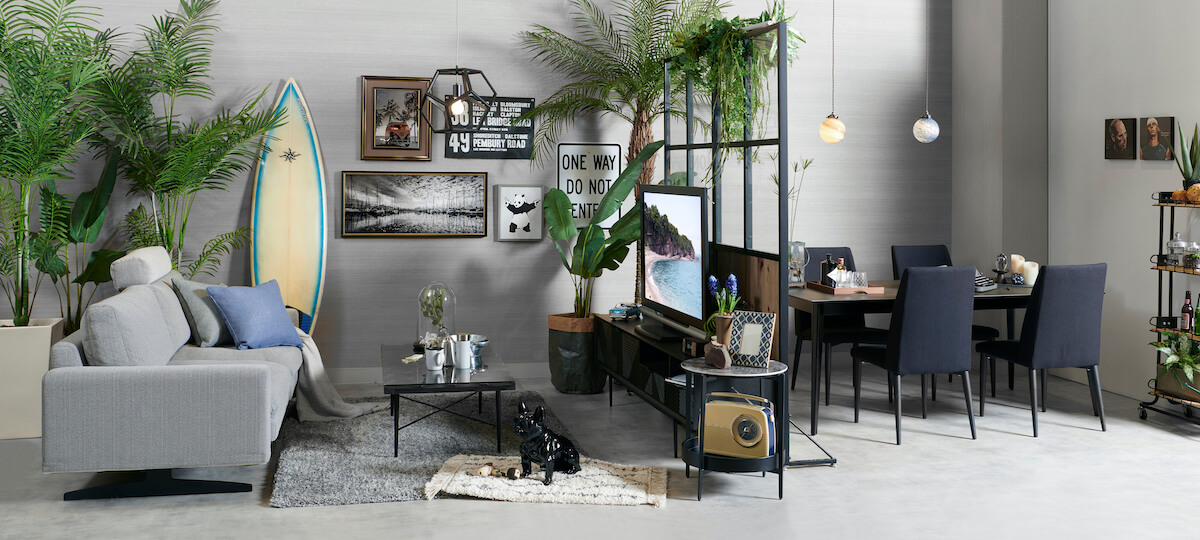 家にいながら外を感じられる空間を意識して観葉植物を大胆にアレンジ。