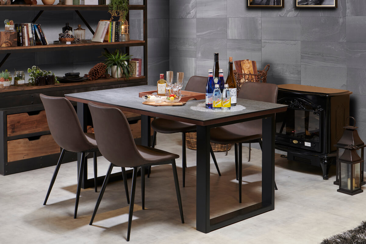 異素材を組み合わせたデザインはセラミック天板テーブルとも相性抜群です。リビングとダイニングの空間をゆるやかにつなぐ役割を果たしています。