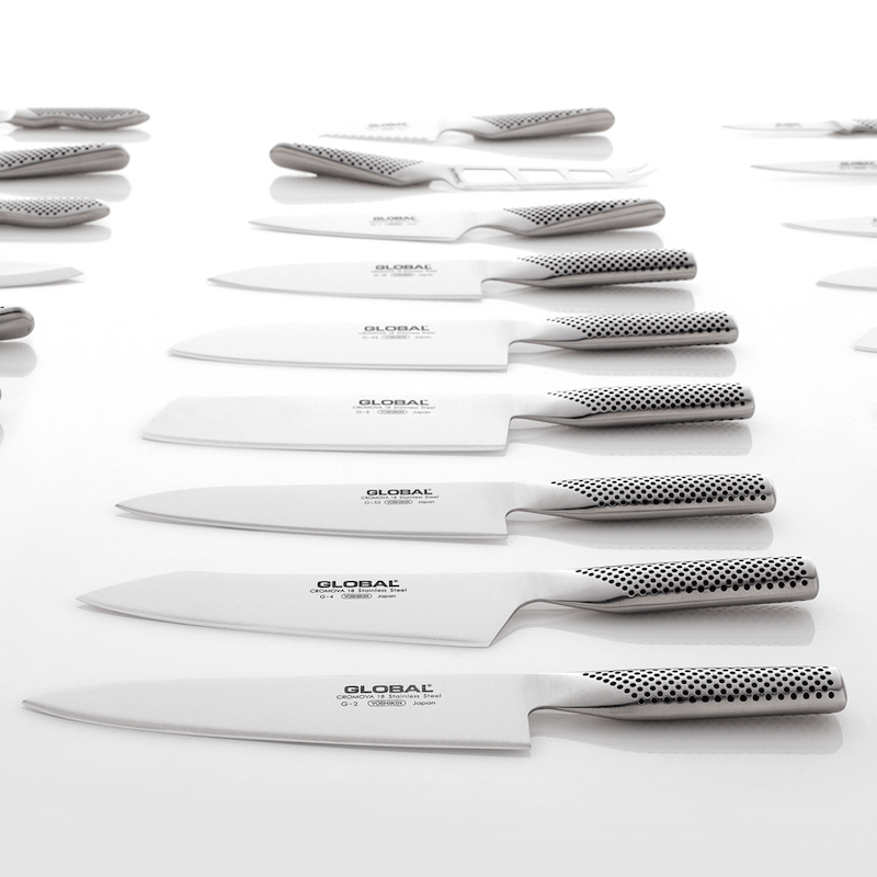 刃から持ち手までがステンレスの一体構造となっているGLOBAL包丁。金物・ステンレスの名産地として知られる新潟県燕三条でつくられ世界で愛されるブランドです。