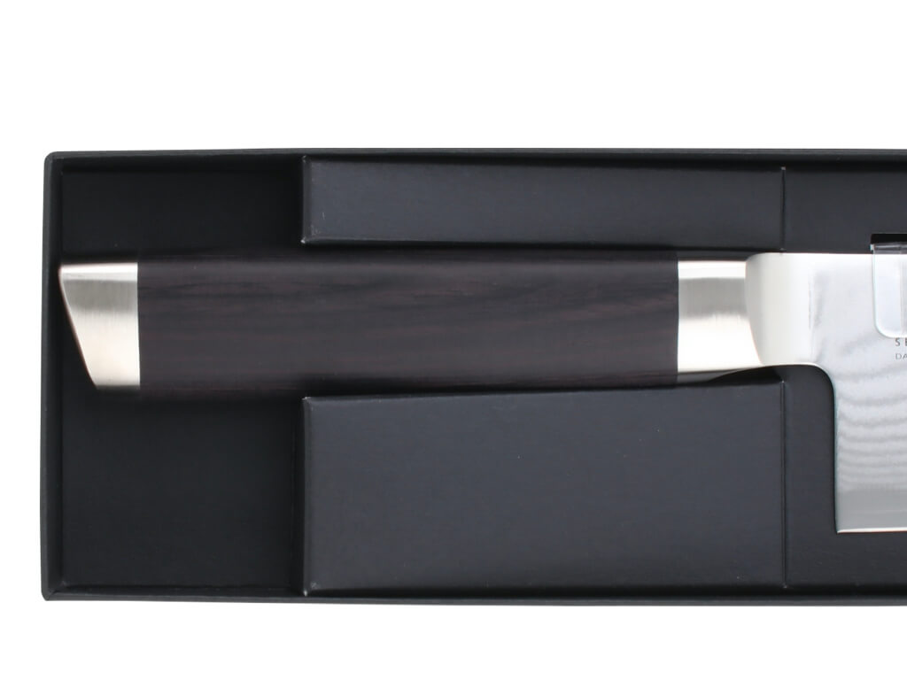 異なるステンレスが32層に折り重なり生まれる「ダマスカス模様」。 |
