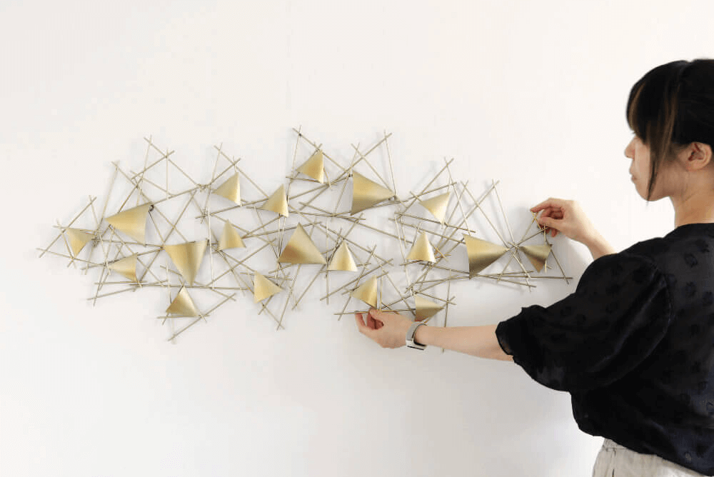 三角と細やかな線で織りなすモダンデザイン。飾りたい場所に合わせて、縦や斜めにも取り付けできます。