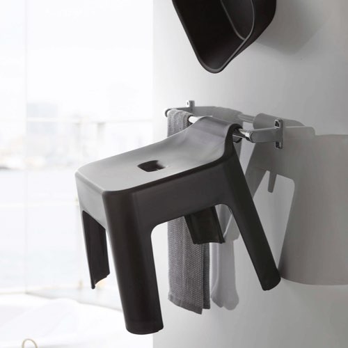 タオルバーや浴槽のふちに引っ掛けておけるお風呂イス。清潔に保てます。