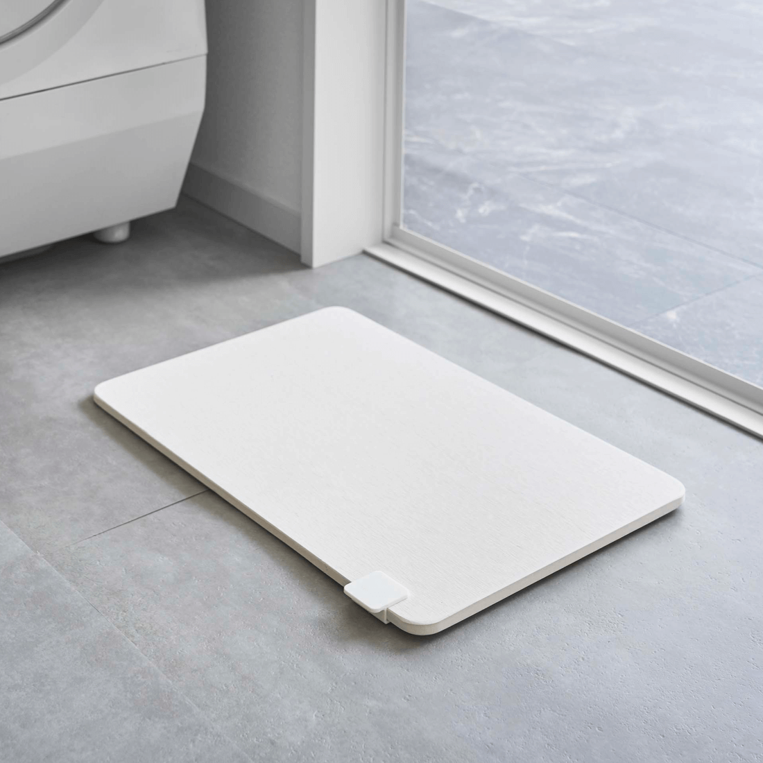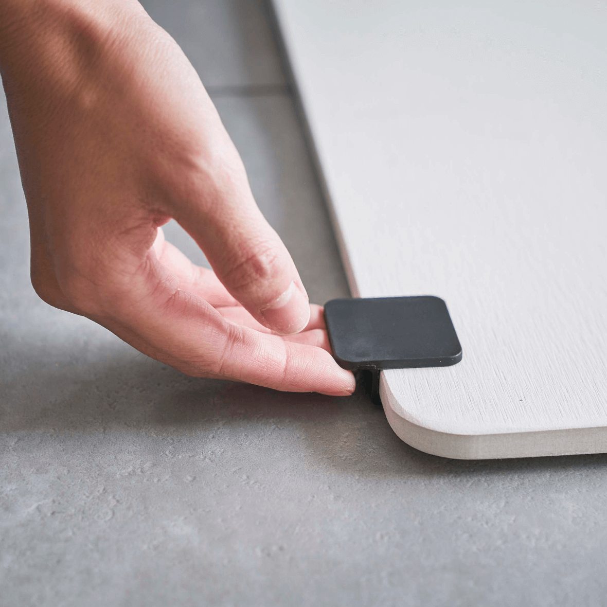 直線で意外と持ち上げにくい珪藻土バスマット。差し込むだけで簡単に取付ができ、ネイルをしている方でも安心して楽に持ち上げられます。
