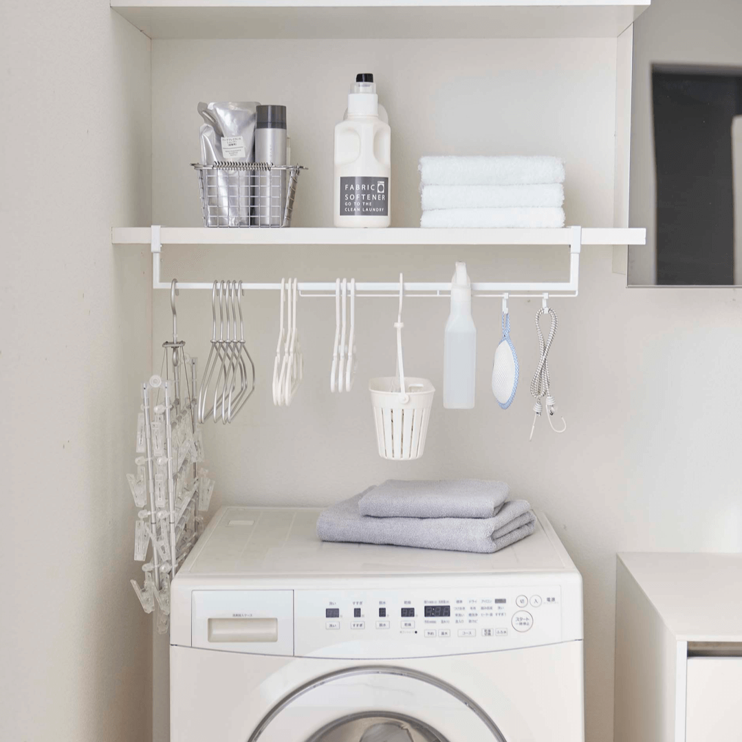洗濯機にマグネットで取り付けることで、様々なものをスッキリと収納できます。