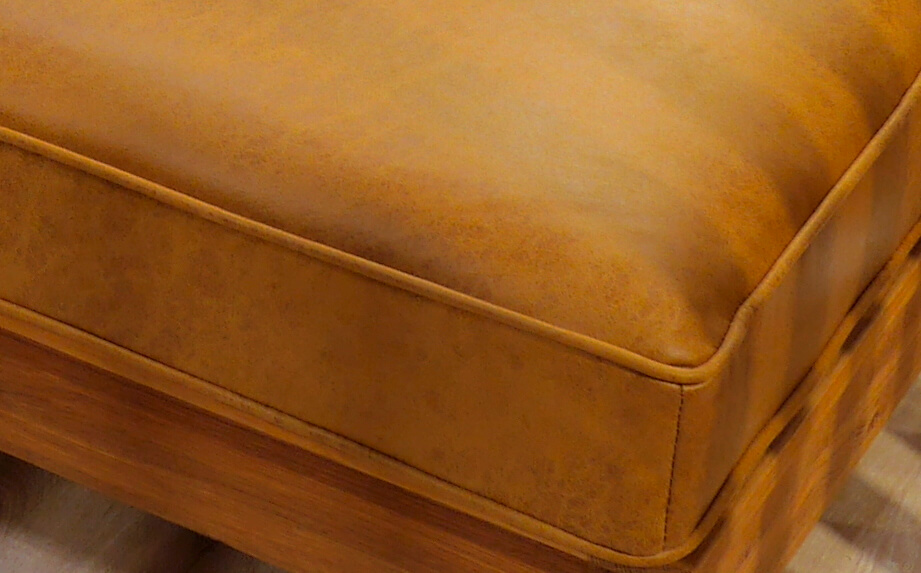 生地は革でも布でもない新素材LEATHERTEX®(レザーテックス)を使用しています。革ではないのにまるでビンテージレザーのような味わいのある雰囲気を演出しています。