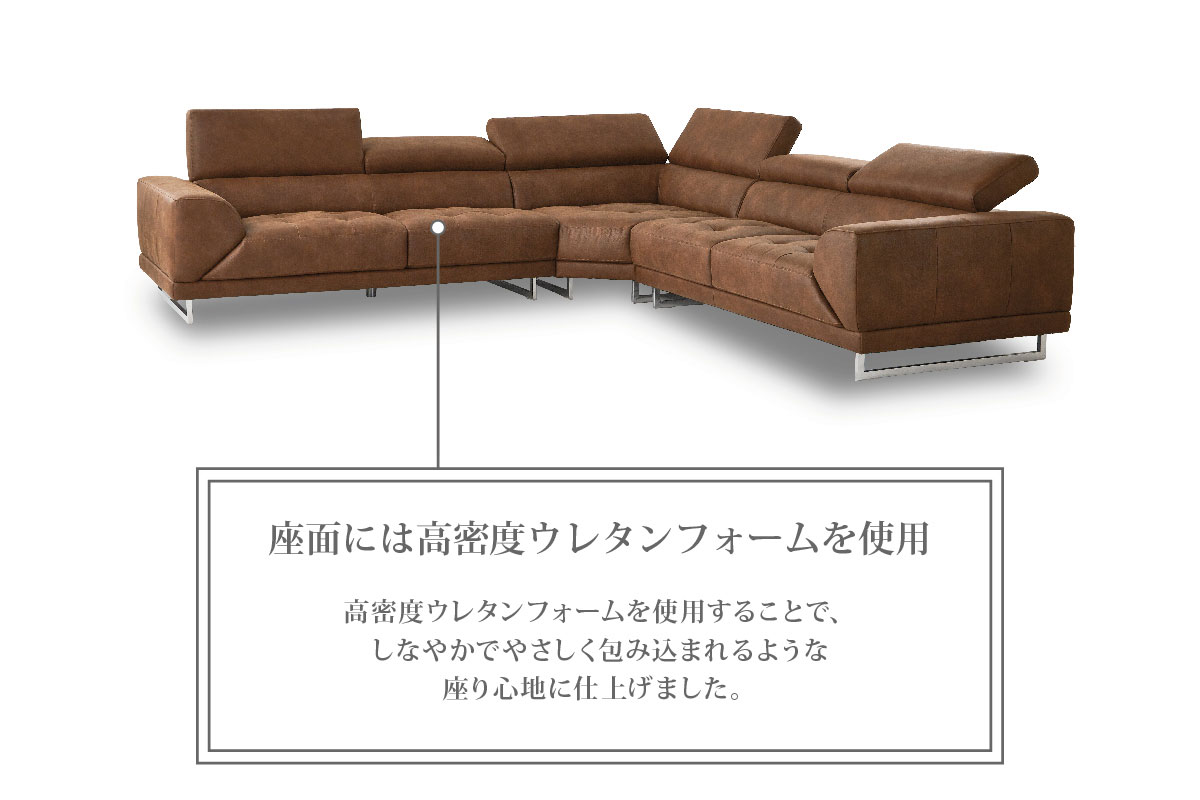洗練されたハイセンスなデザインでこのボリューム感も併せ持ちながら、 レザーテックス生地を使用することで本革の同サイズソファと比べるとコストパフォーマンスが高くリーズナブルな価格になっています。