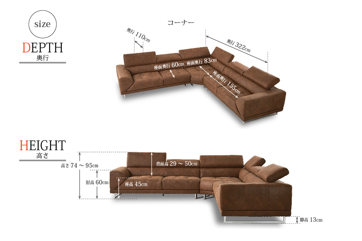 幅322x奥行110-322x高さ74-95(cm) 座面高45(cm)