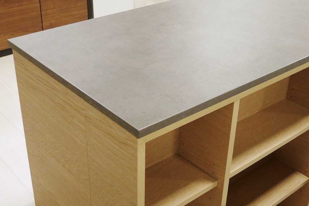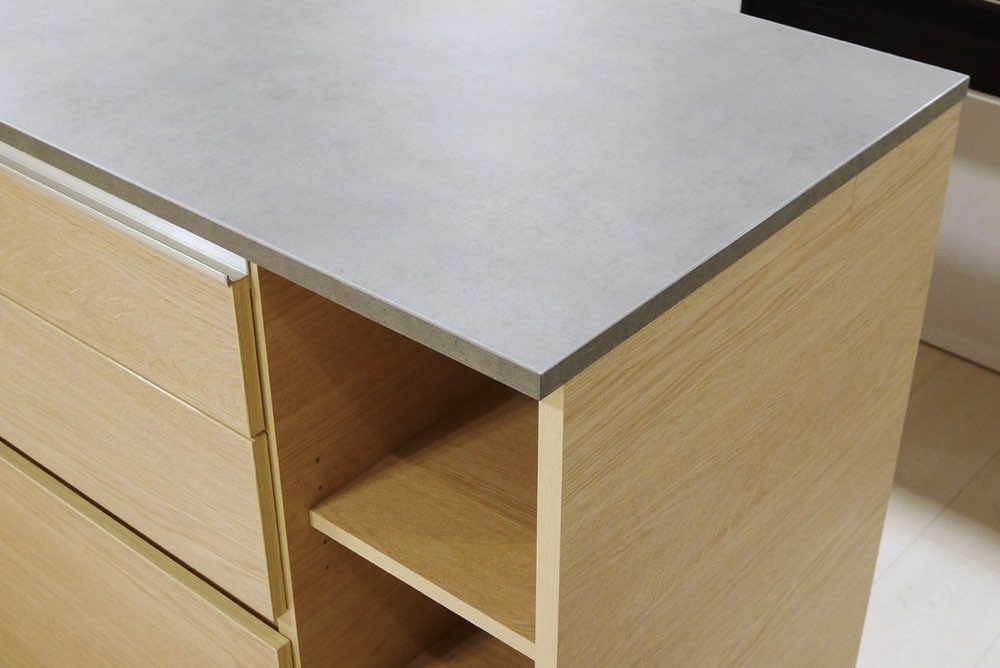奥行20㎝と奥行40㎝の下台を前後連結して、両面使いのアイランドカウンターとして使用できます。天板上での作業も捗る奥行です。