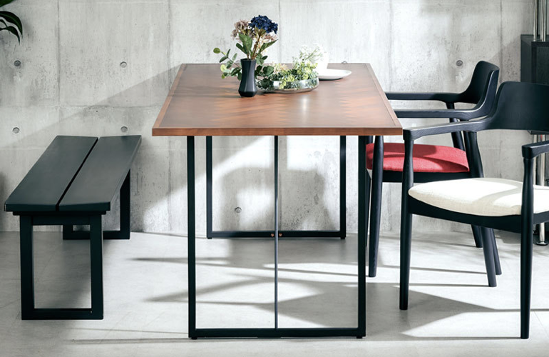 セミマットな質感の、細身なアイアン脚でスタイリッシュな印象に。