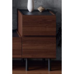 天板にセラミック調のシートを使用した、軽やかな印象のローボードです。中が見えないので生活感がなくスッキリとします。