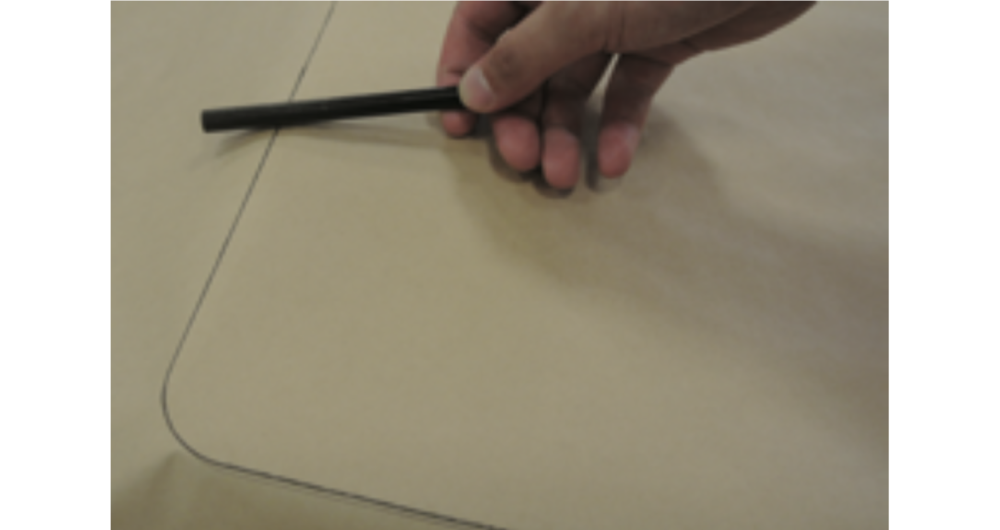 - クーピーペンを使い、天板の外側をなぞり型取りします。