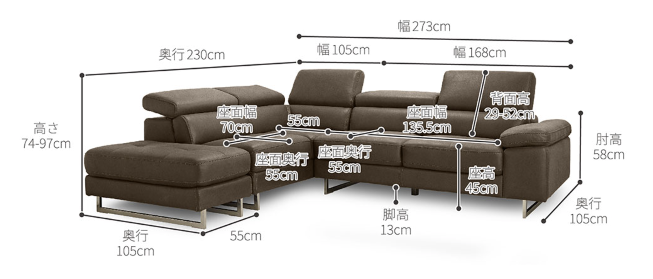 横幅273×奥行230×高さ74(㎝)