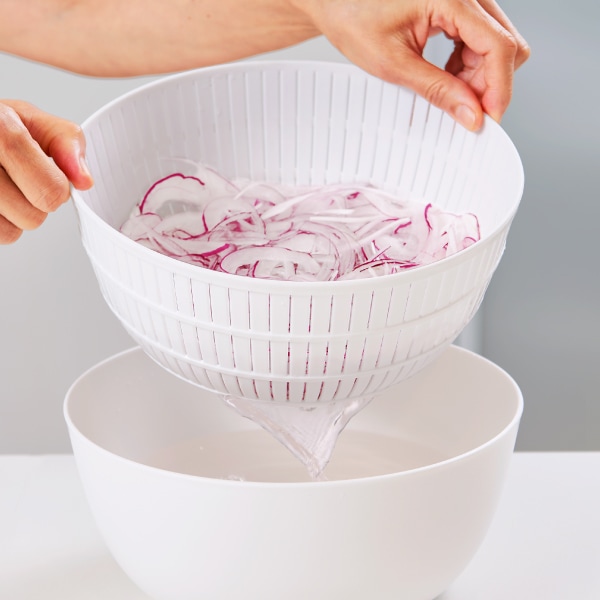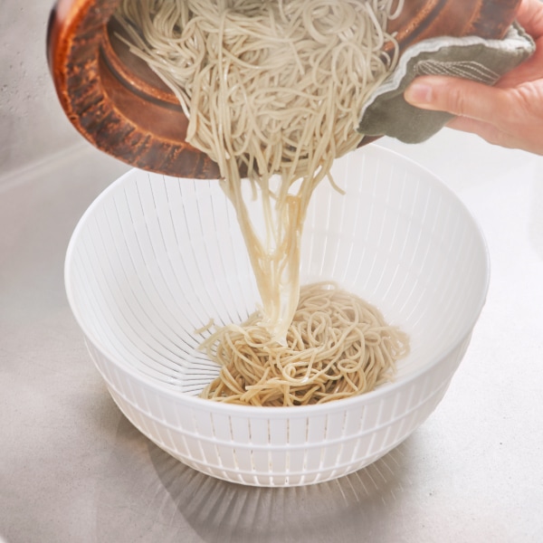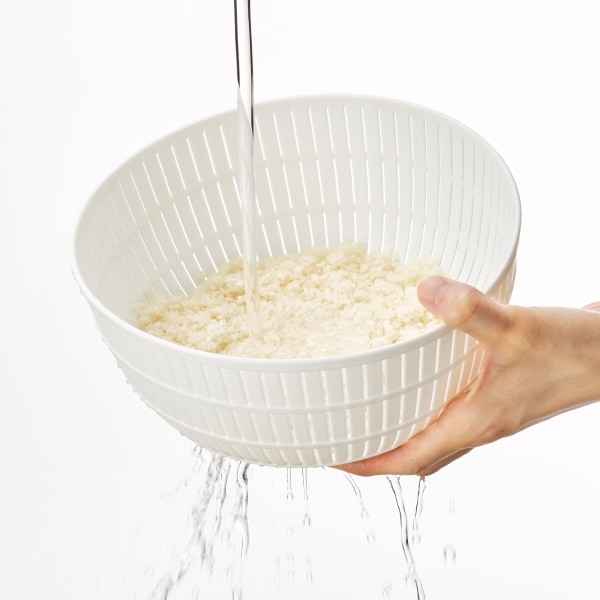 - サラダの水切りや冷蔵庫での保存にも使うことができ、ボウルとセットしてそのまま食卓へ。米とぎはモチロン、様々な調理シーンで活躍します。
