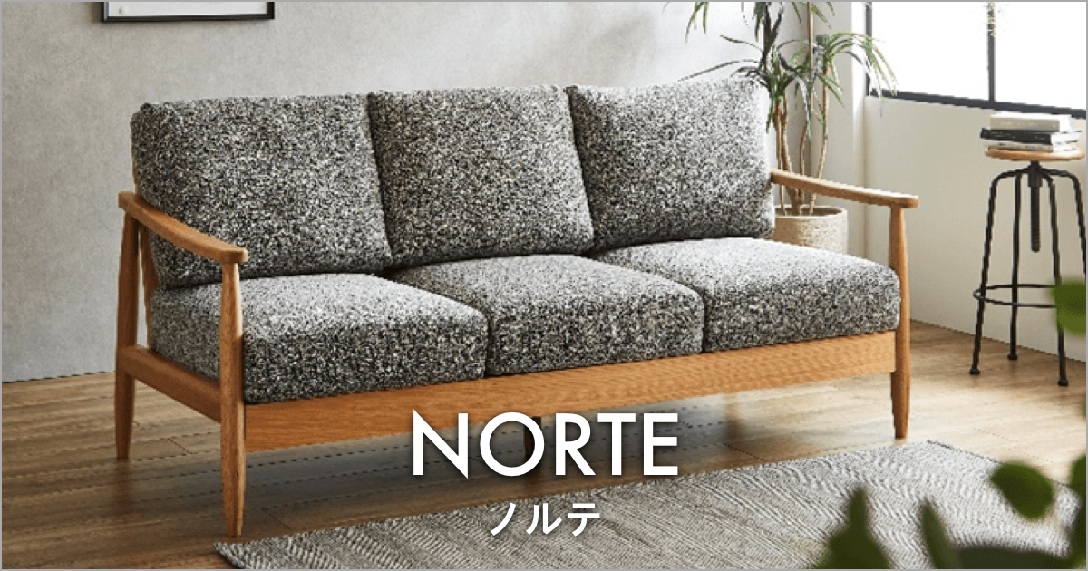 人気のレザーテックス素材とアッシュ無垢材を使用したソファ