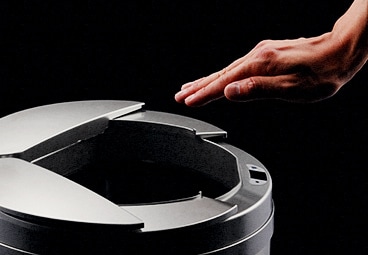 手をかざせば自動で開閉、開いて約5秒で勝手に閉じます。ボタンでの手動開閉も可能です。感知範囲は0〜30 cmで自由に調整していただけるため、前を通るだけでフタが開くといった心配もありません。