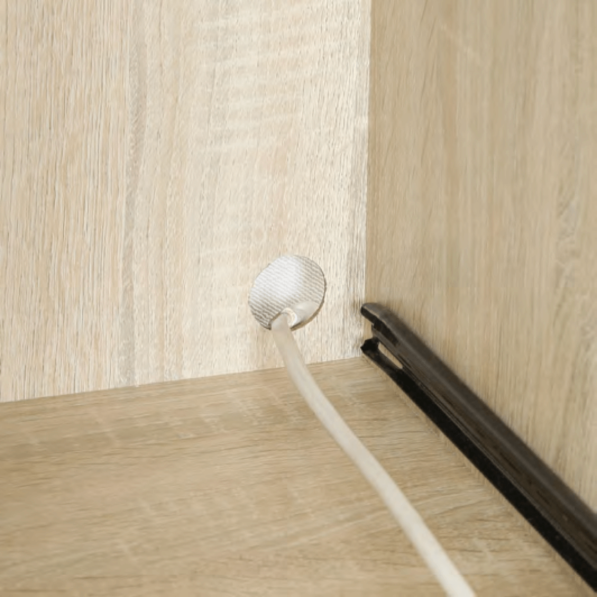 炊飯器やトースターなどのコードを通す穴があり、配線もラクラクです。