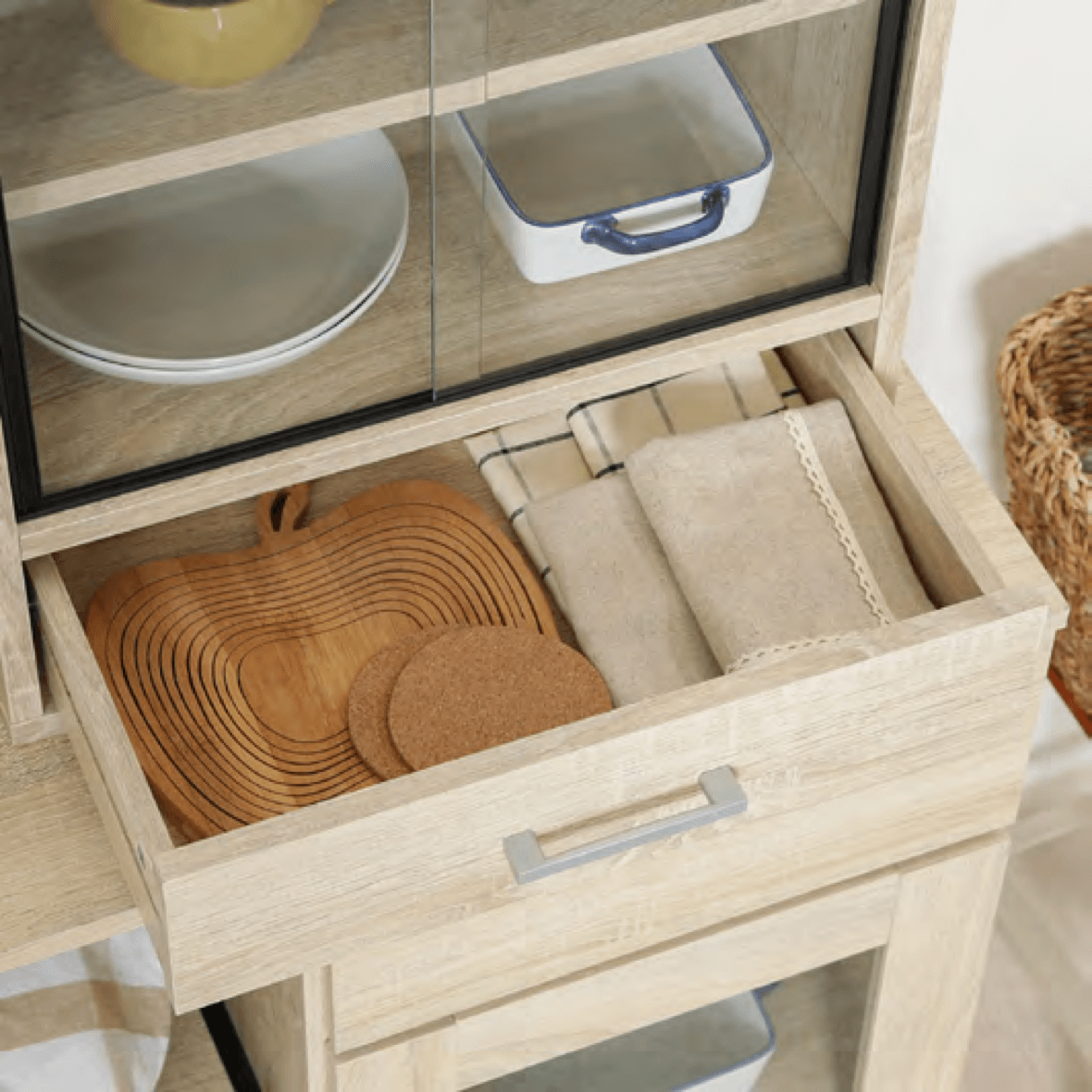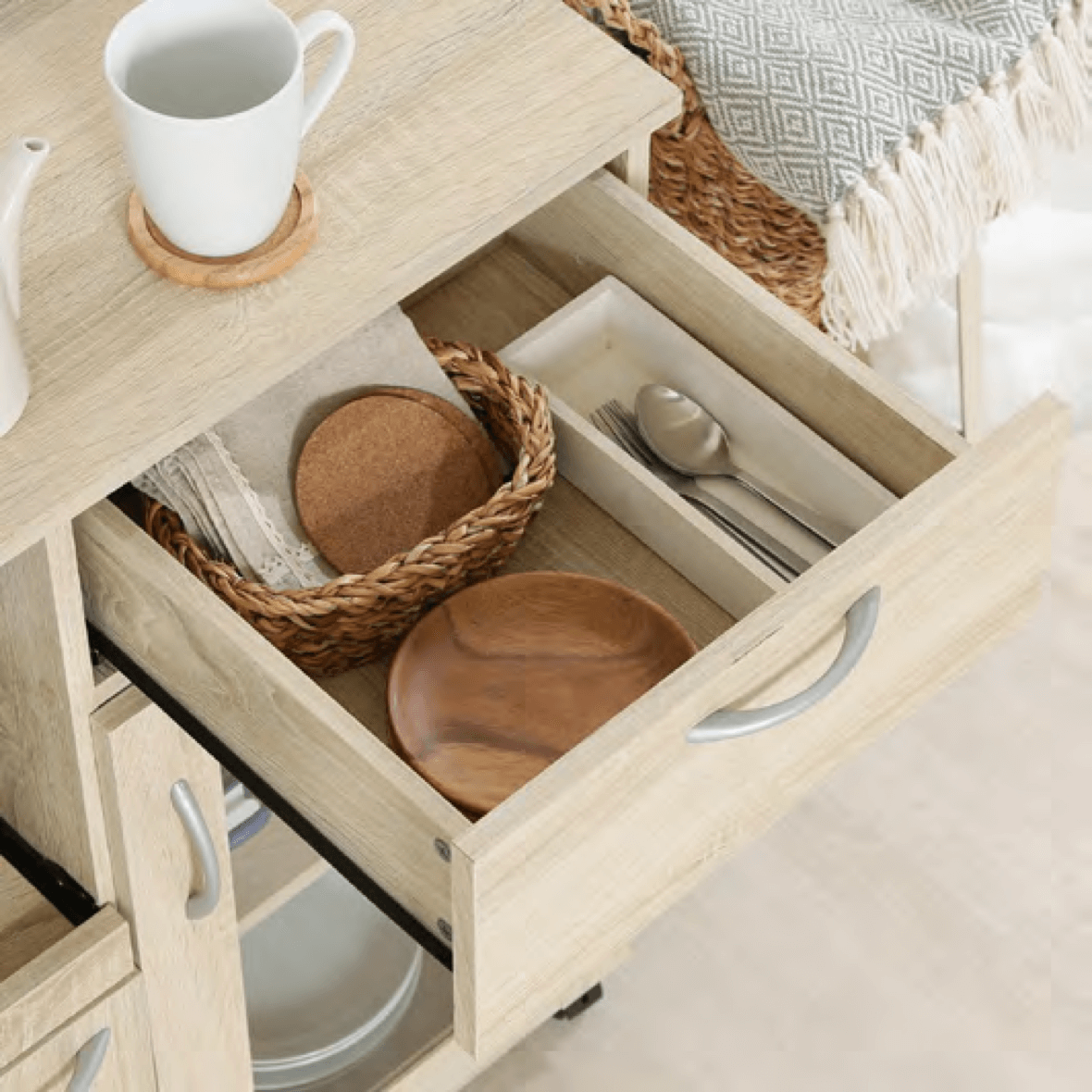 引き出しにはお箸やランチマットなど、かさばる小物をすっきり収納できます。
