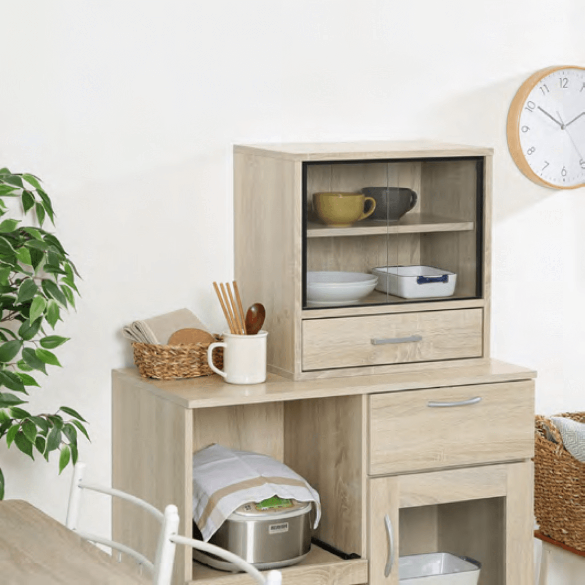 1 ~2 人分の食器の収納に適しています。限られたスペースにも圧迫感なく設置で きるので、一人暮らしにもオススメです。