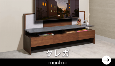 浮遊感のあるテレビボードはダイニングで使用のボードと同シリーズ。シリーズで揃えることで統一感のあるコーディネートが生まれます。