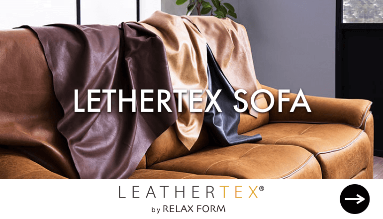 「革のようで革じゃない」レザーテックス素材を使ったLDスタイル設計のソファです。
