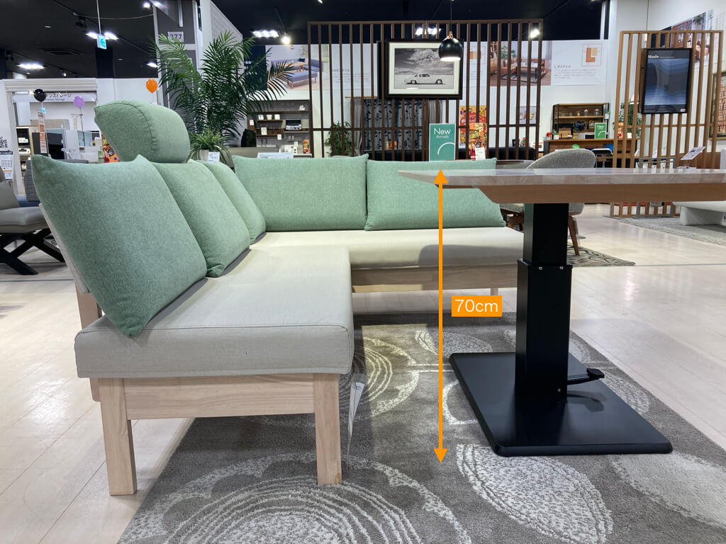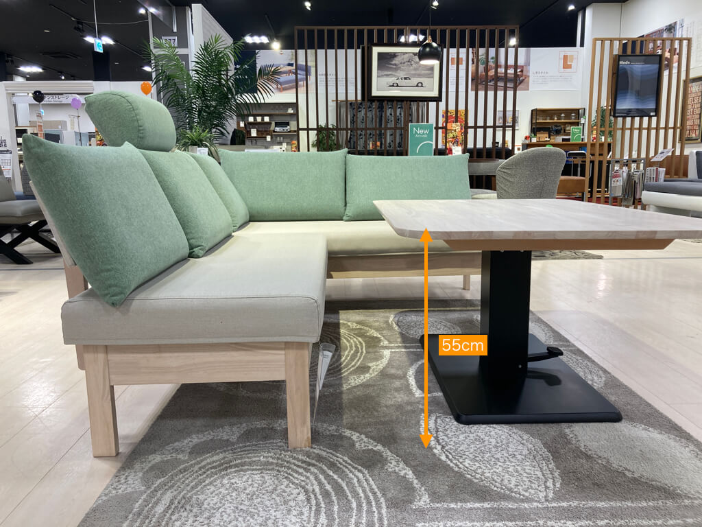 ご飯を食べる時は高めに、普段テレビをみてリラックスしている時は低めにとお好みで高さを変えられます。