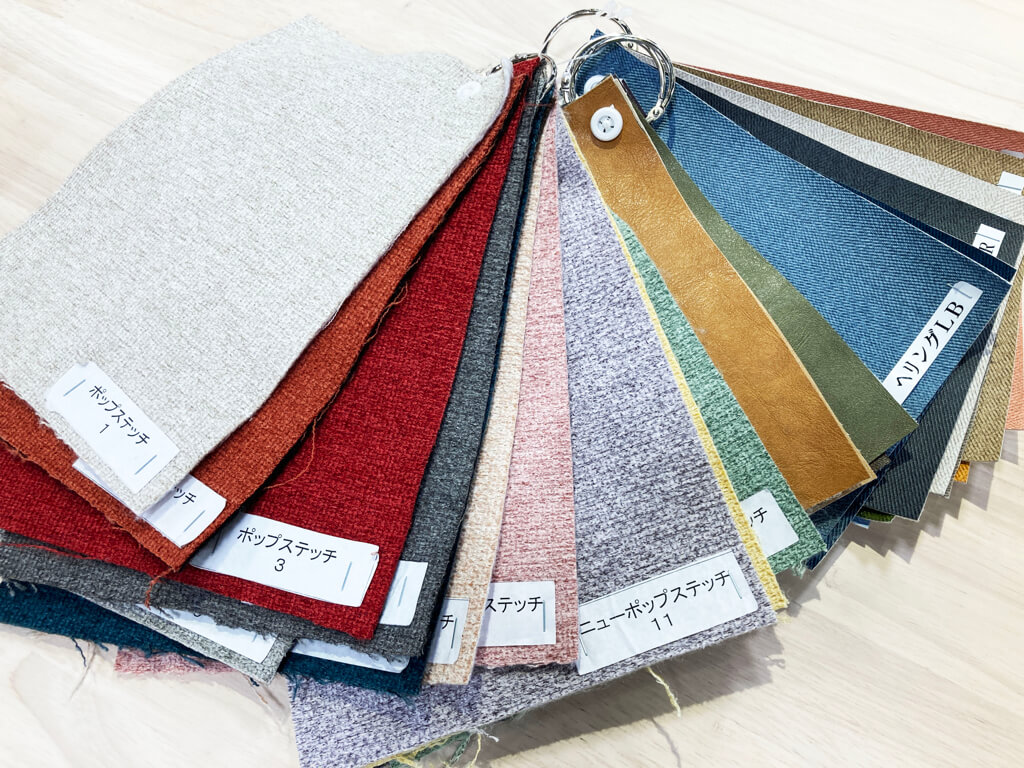 張地は、店頭の生地サンプル(布・合皮)からお選びいただけます。