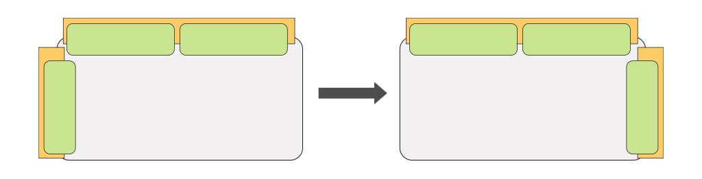 カウチの背板は左右組み換え可能です。お部屋のレイアウトに合わせて設置方向をお選びください。