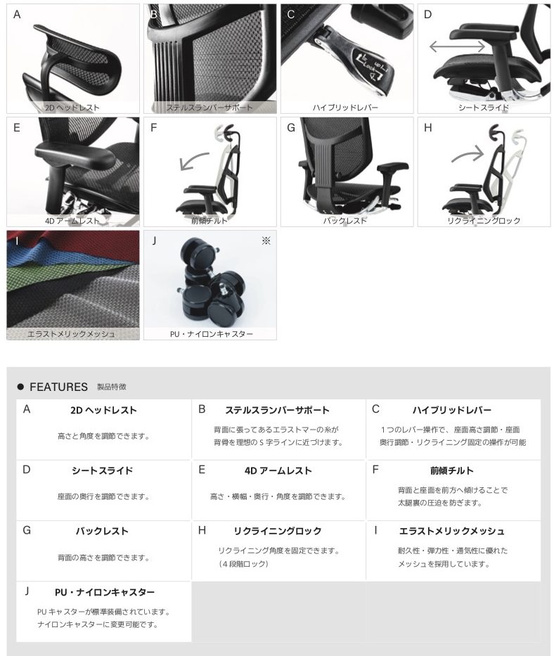 着座した時に背中全体をランバーサポート一体型のバックレストが支えてくれる、デスクワークをする全てのかたにおすすめのチェアです。