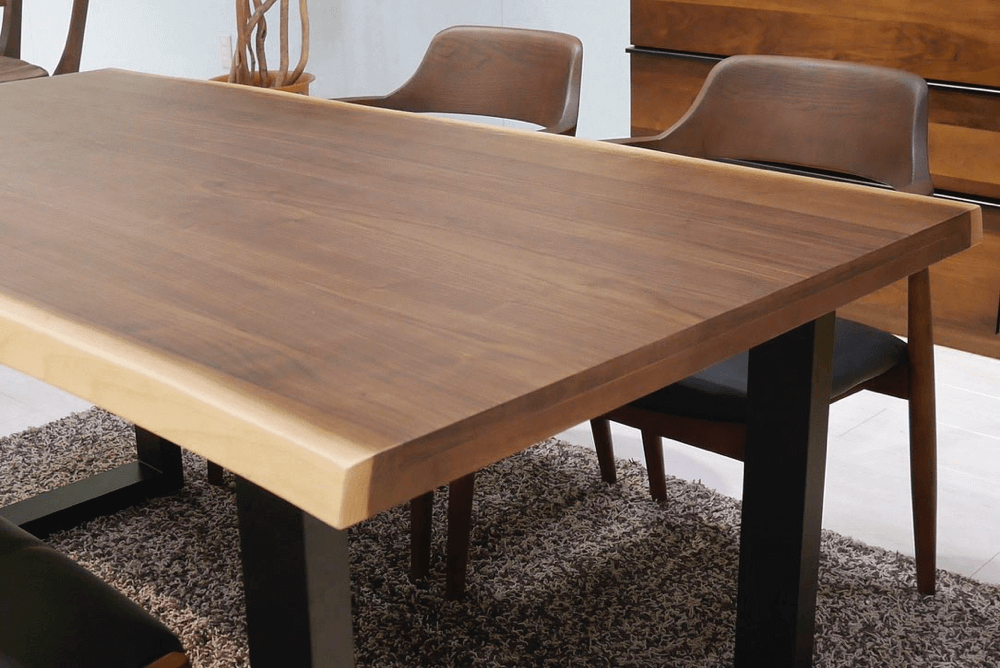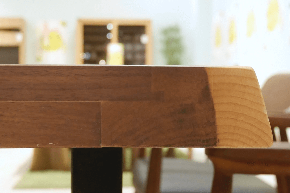 天板厚は4.5cm。突板仕上げの一枚板風天板で、手頃な価格が魅力です。