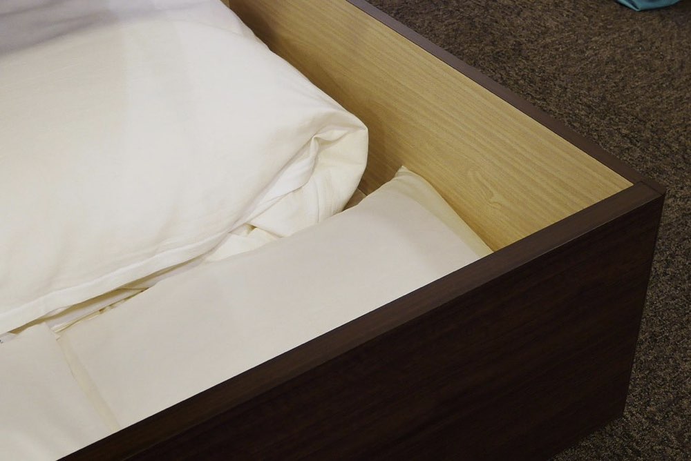 マットレスの下部分が引出しになっているベッドフレーム。引出しは2杯の商品が多いです。