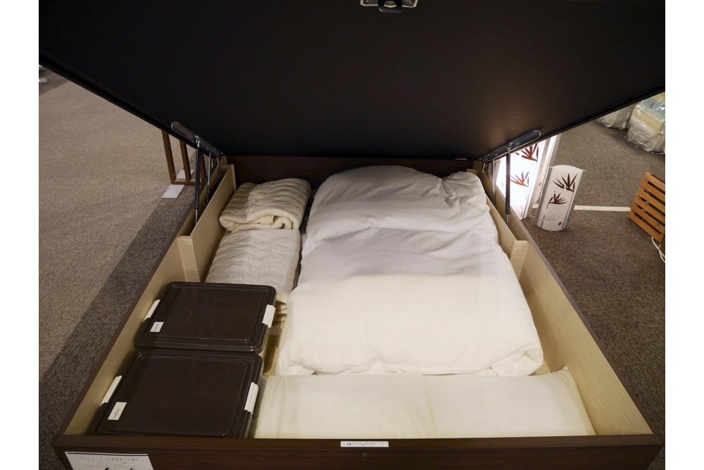跳ね上げ式ベッドの収納例
