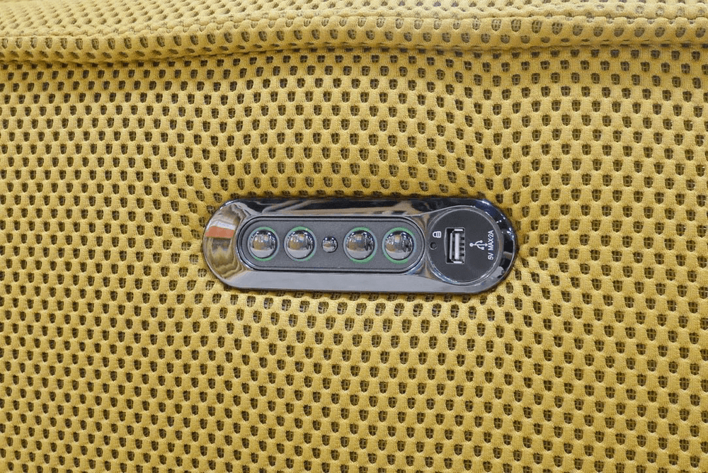 ヘッドレストがボタンで上下する、新しいタイプの電動ソファです。2モーター仕様で、背足連動リクライニング・ヘッドの上下可動(角度調整)をそれぞれ操作できます。
