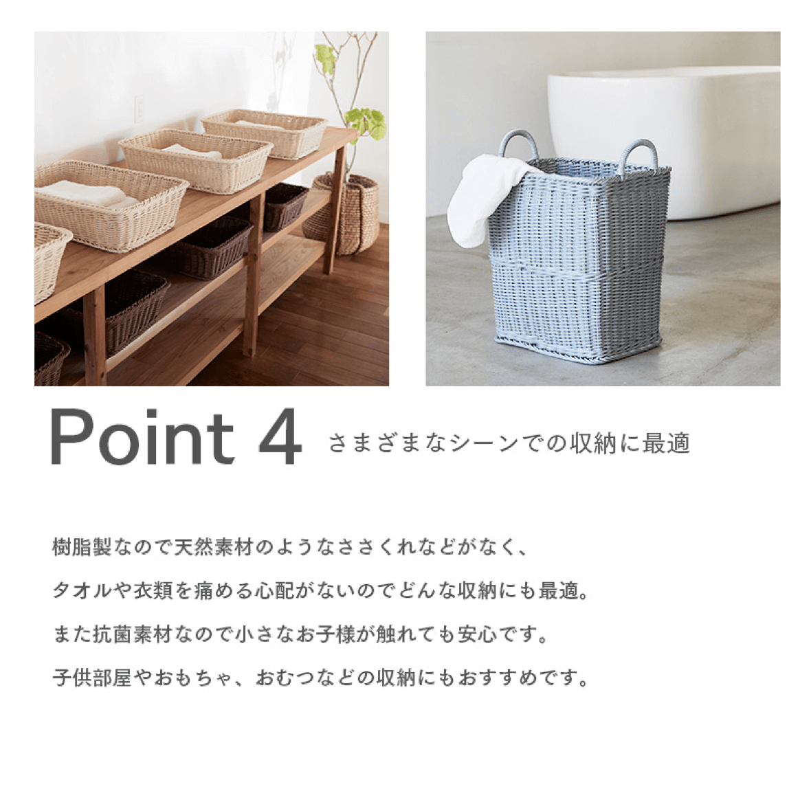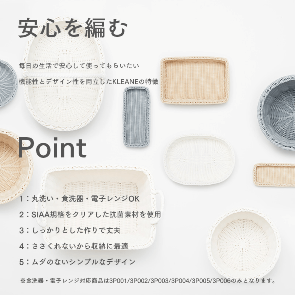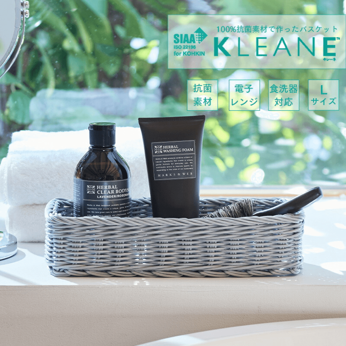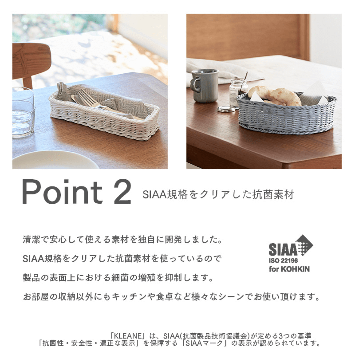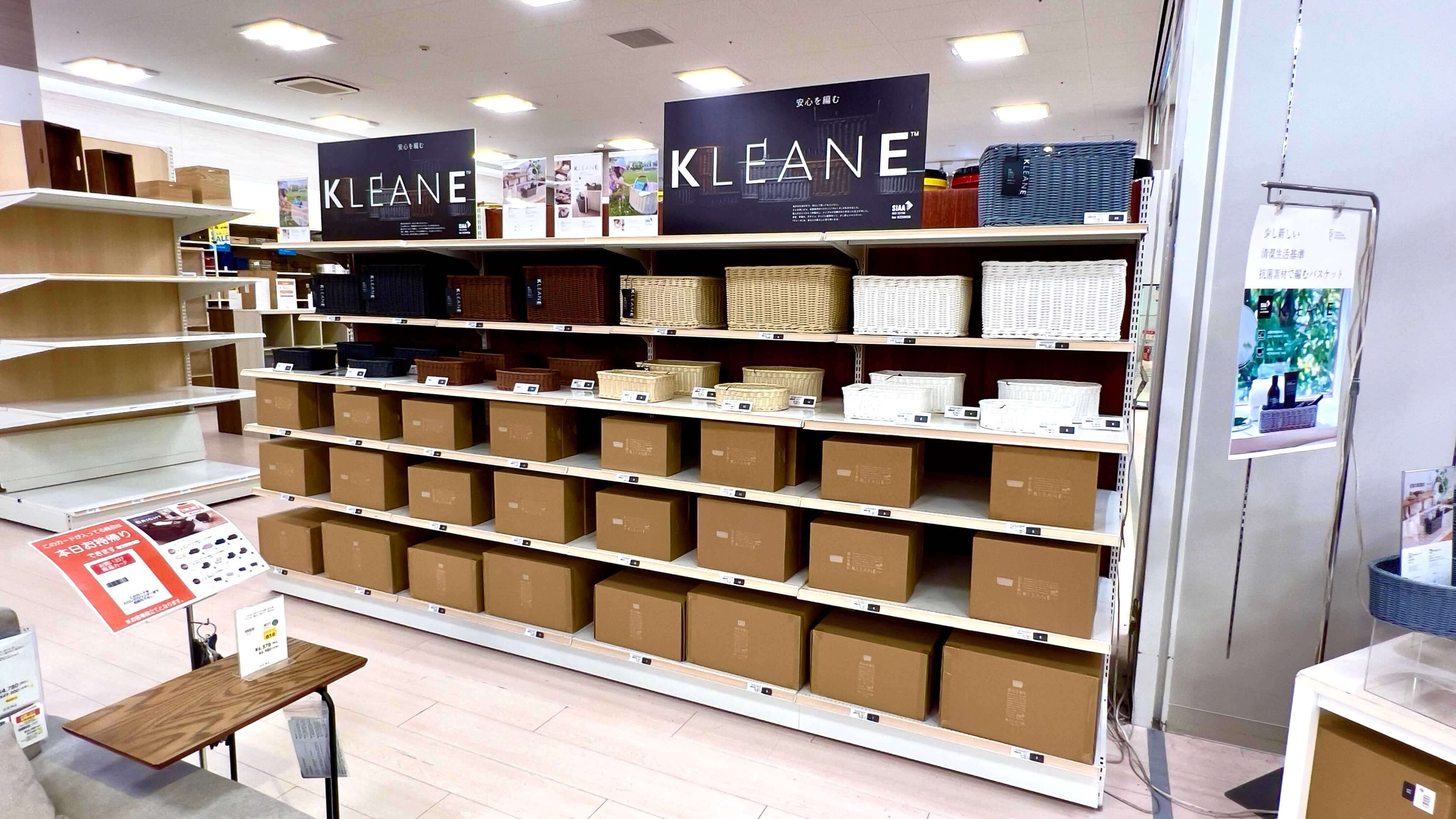 ファニチャードーム本店に新しく、抗菌仕様のバスケット、KLEANE(キレーネ)を導入しました。天然素材ラタン調のデザインで、サイズバリエーションが豊富で、カラーもナチュラルカラーからモノトーンまでお選びいただけます。
