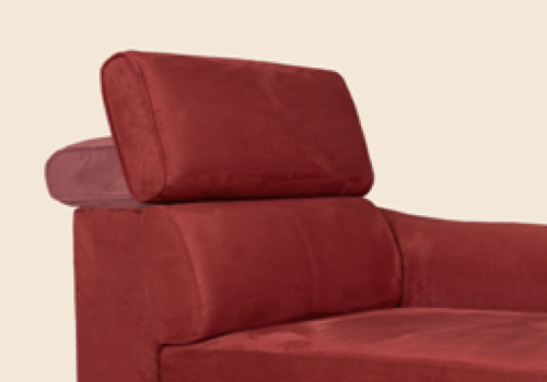 ヘッドレストを起こすとハイバックに。普段は倒しておくと高さが抑えられ、圧迫感を抑えられます。お部屋の中心にソファをレイアウトする方におすすめです。