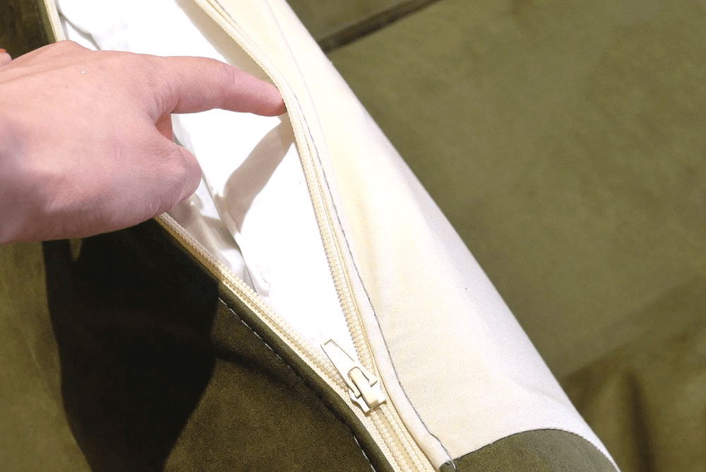 背クッションには羽毛と、劣化しにくいミクセルを使用。体にフィットしやすくなっています。