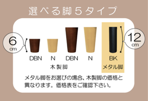 ブラックのメタル脚と、木脚は4タイプから選べます。