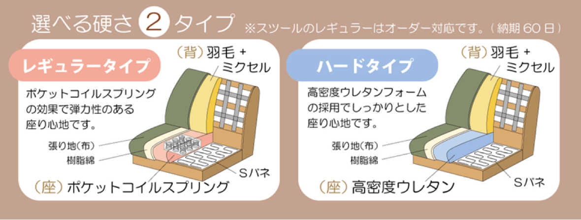 座面の硬さはレギュラーとハードから選べます。