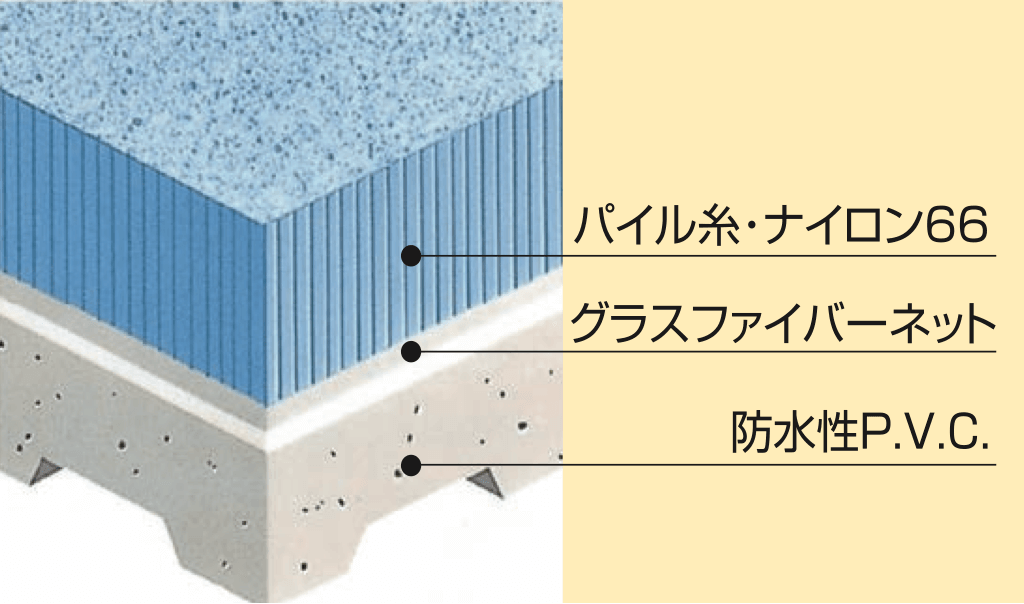 約7,000本/cm2の超高密度パイルで、汚れが奥まで入り込みません!しかも、防水バッキングだから、水がしみこまずすぐに乾燥します。