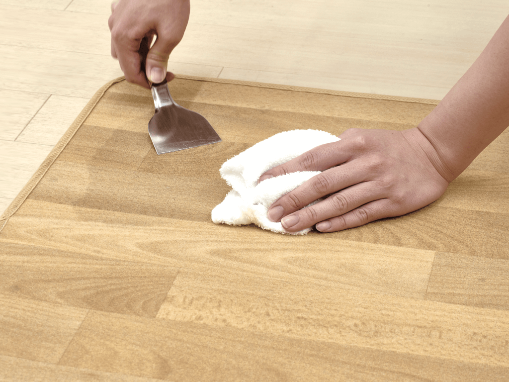①汚れをヘラなどで押し出し取り除きます。