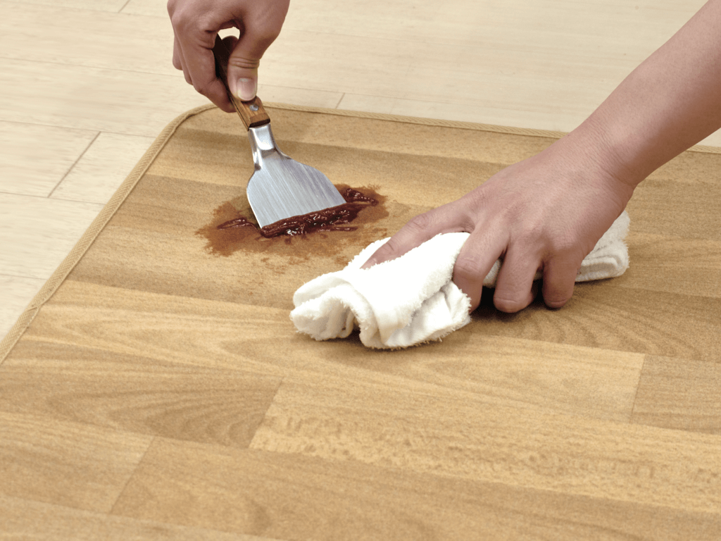 クリーンロボは、水洗いができるカーペットです。リビングやダイニング、キッチンの床などはとても汚れやすい場所。カーペットが汚れたらお掃除がなかなか大変です。「クリーンロボ」なら、汚れた部分だけゴシゴシとブラシで水洗いできるので、ずっとキレイにお使いいただけます!