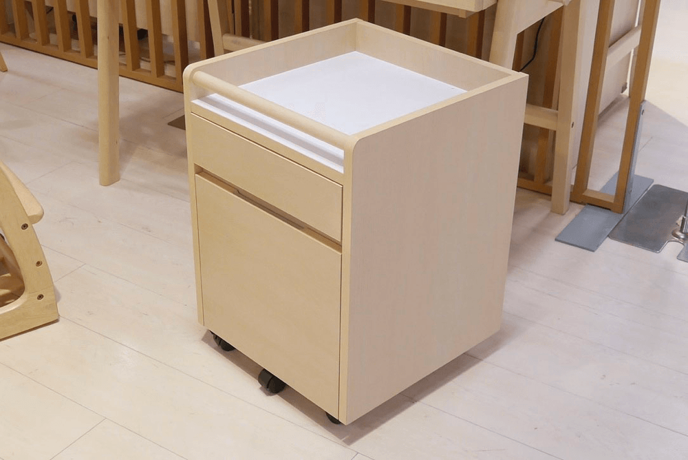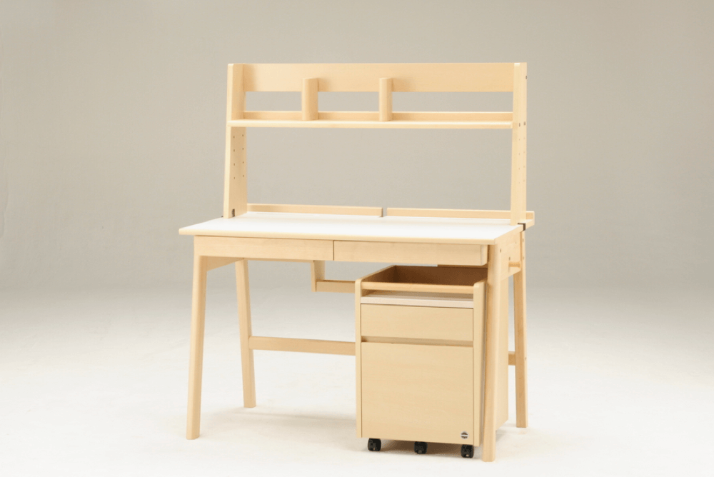 やさしい風合いのメープル無垢材を使用したコンパクトデスク。ワゴンやラックなどはお好みで組み合わせを選べます。