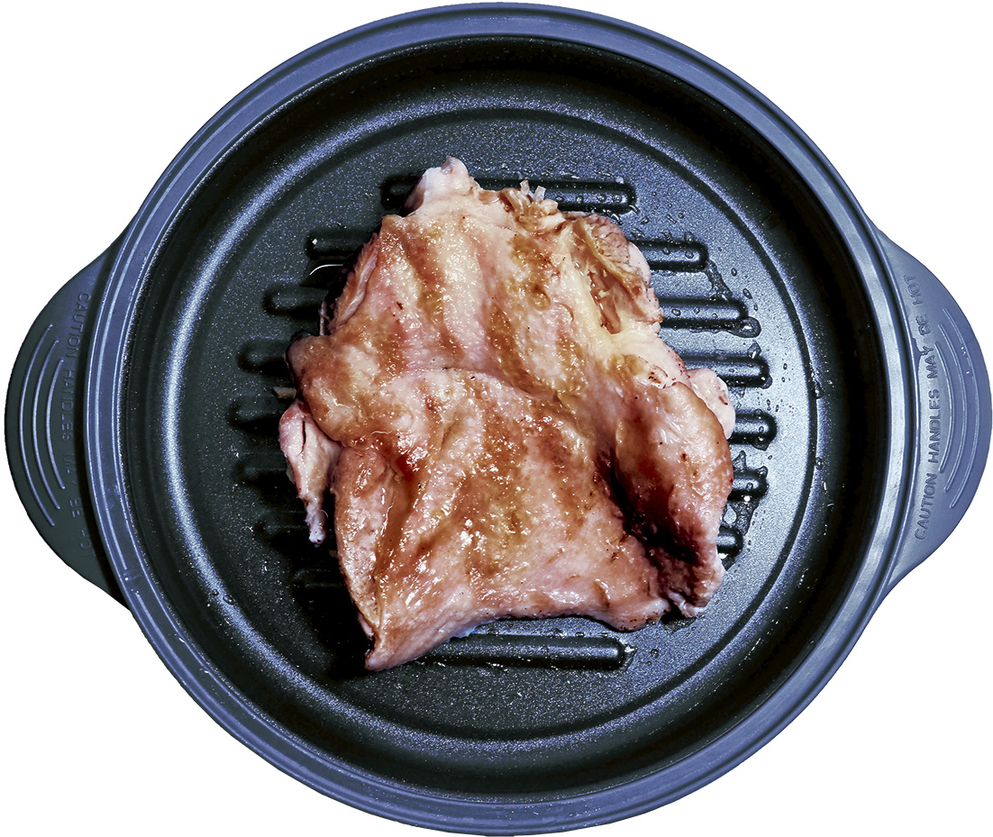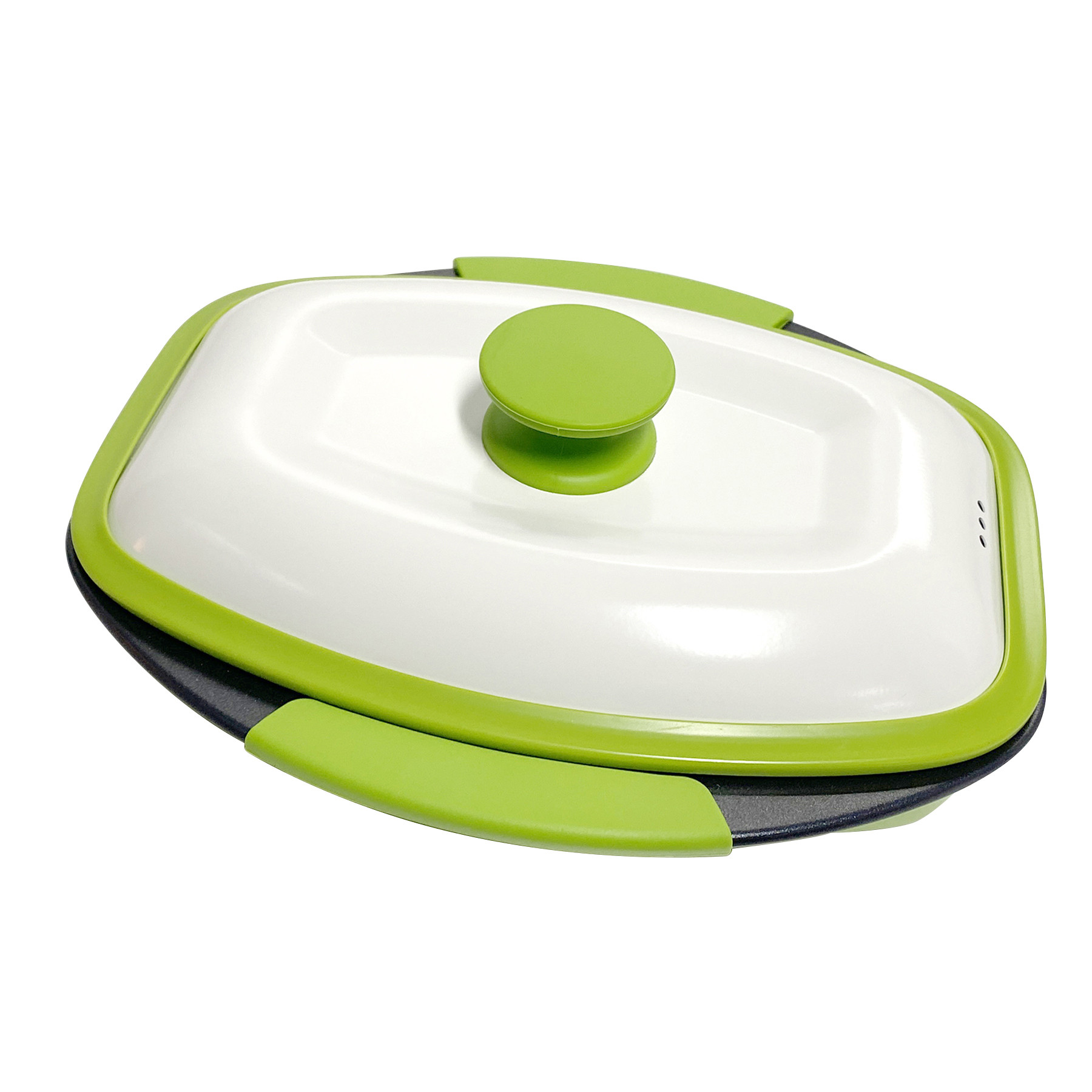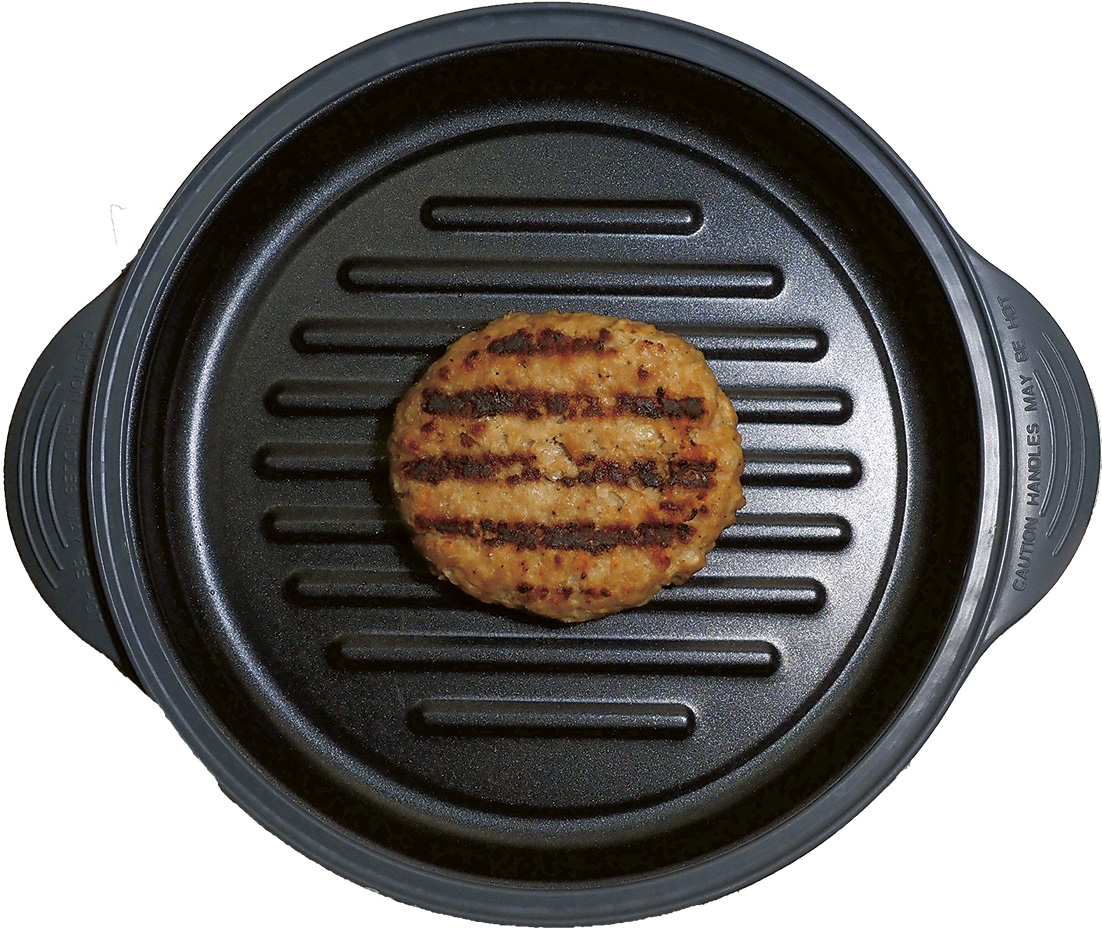 ■底面の特殊素材がマイクロ波を熱に変え、マイクロ波を遮断するフタをすることで、食材全体に熱が行き渡り、中はふっくら外はカリっと焼きあがります。