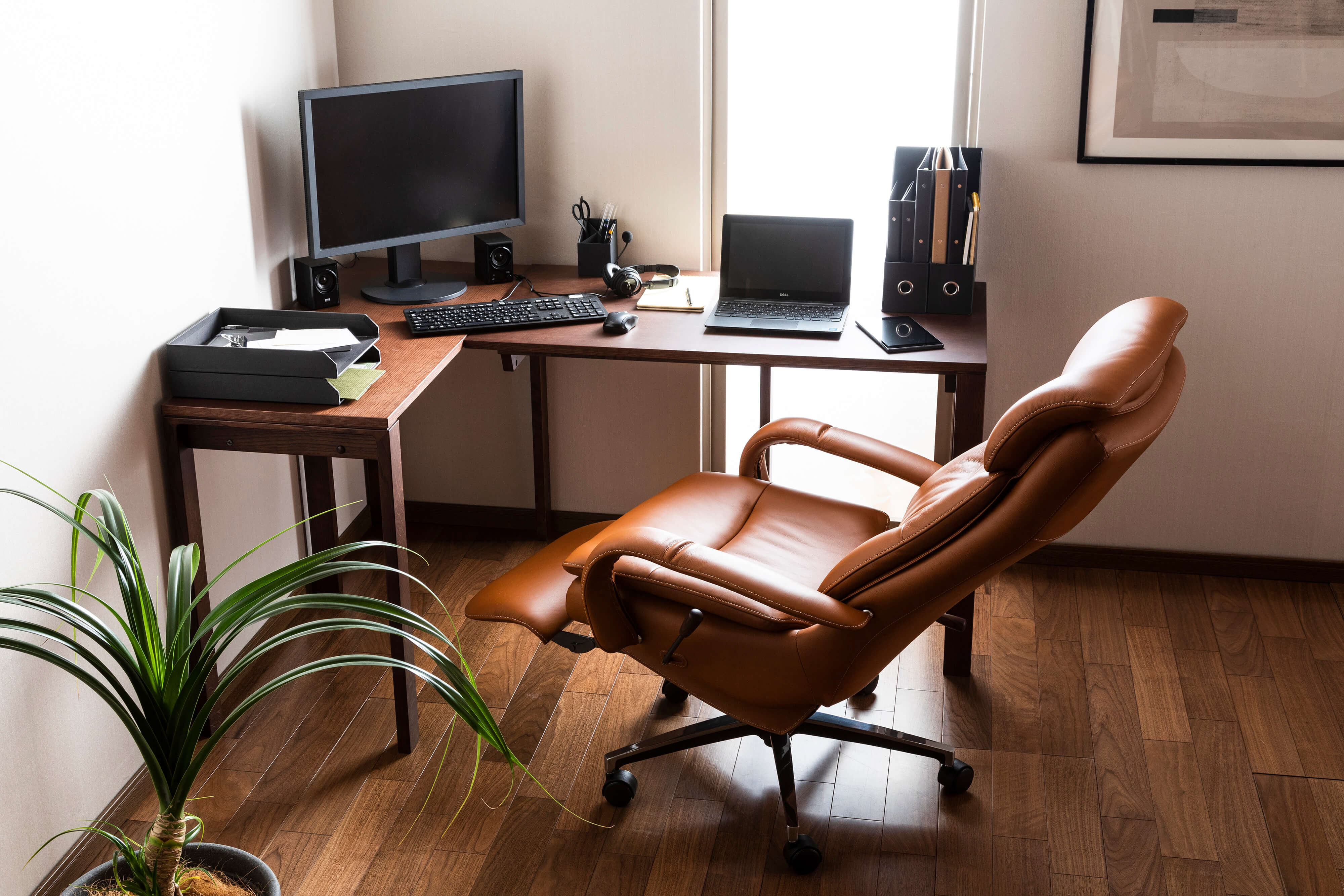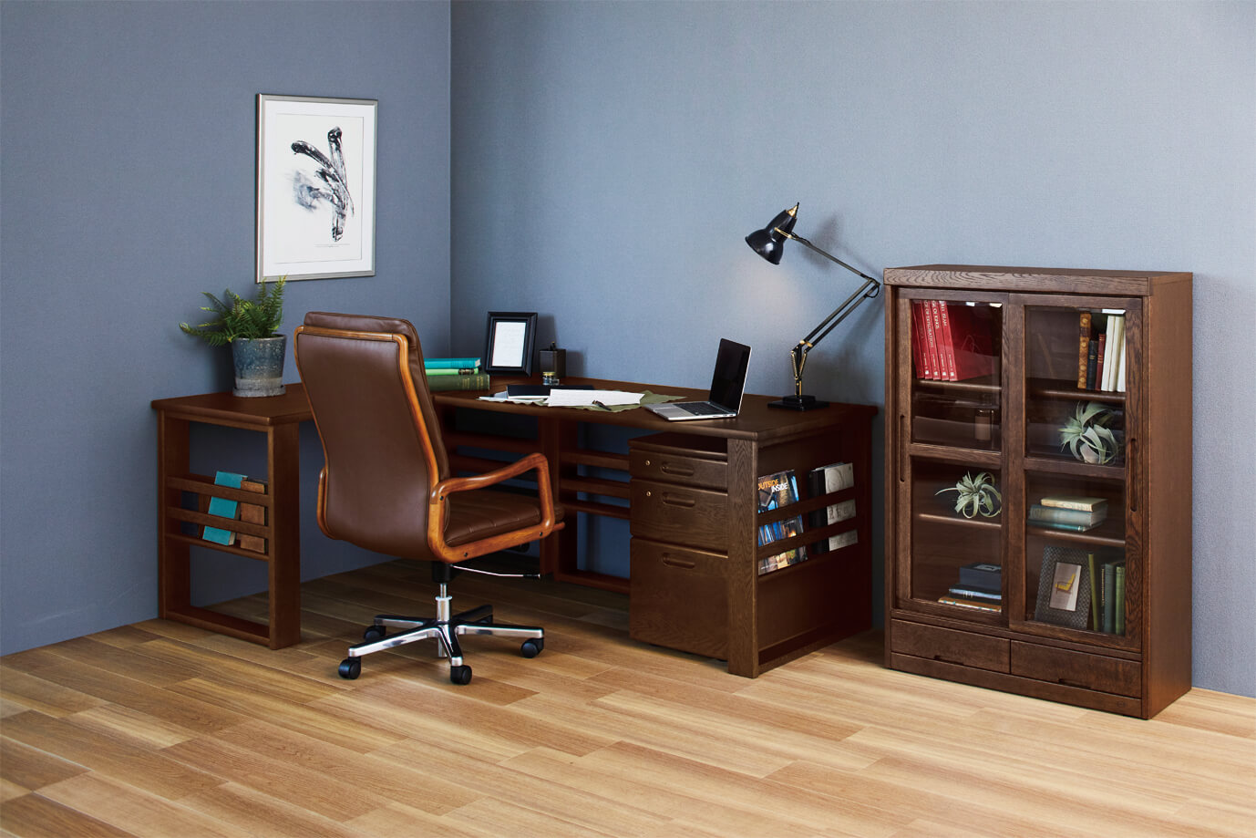 品質にこだわり、上質な”国産家具”を生産している浜本工芸のチェア。大人の書斎にぴったりな、高級感と落ち着いた佇まいが特徴です。オーク無垢材・本革と、上質な素材を使用した日本製のデスクチェアです。