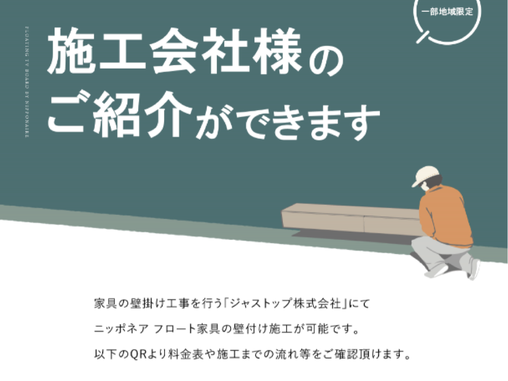 - フロート家具(TVボード)は、壁掛けTV以外でのご使用はお控えください。