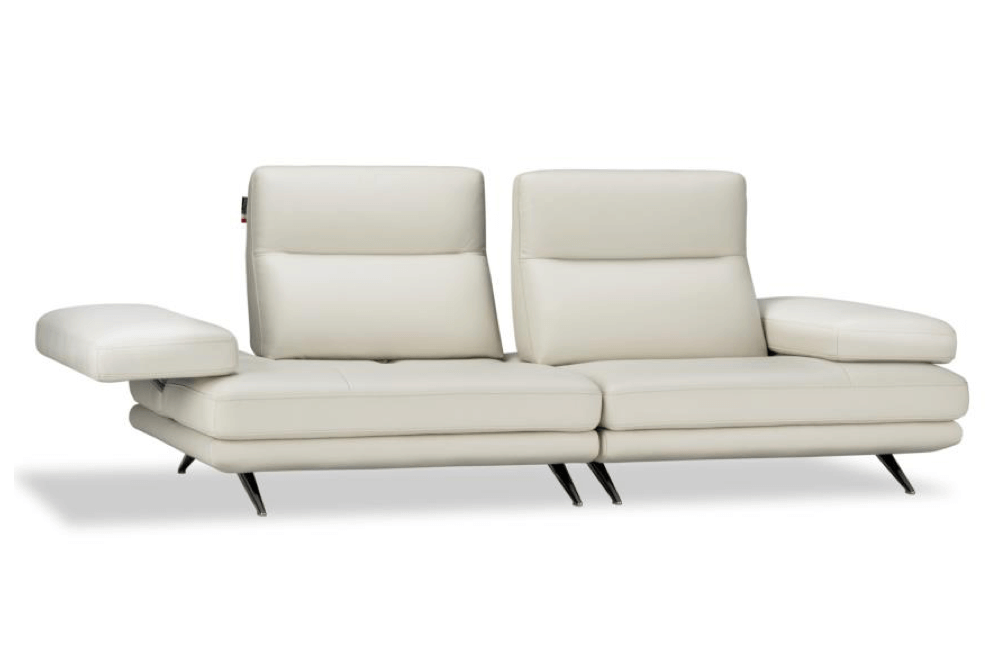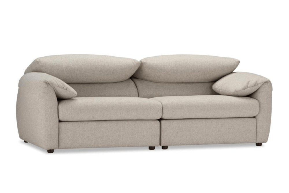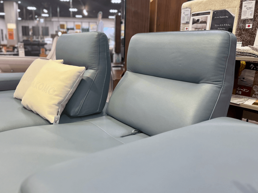 ヘッドレストが折りたためるハイバックソファ。