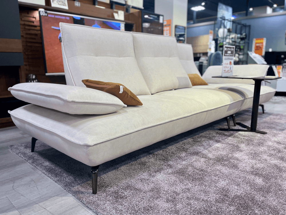 背もたれをスライドすることで、シェーズロングとしてもくつろげる人気スタイル。