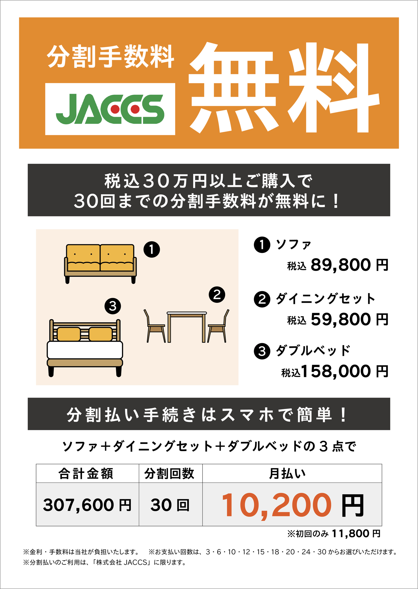 最大30回払いの手数料が無料!